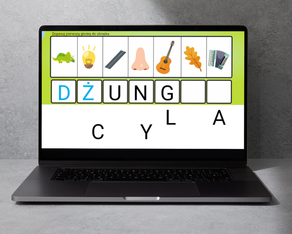 Tworzymy wyrazy – głoski szumiące to gra edukacyjna, w której dziecko uczy się rozpoznawać i utrwalać głoski szumiące (sz, ż/rz, cz, dż) poprzez dopasowywanie odpowiednich liter do obrazków oraz tworzenie poprawnych wyrazów. Zadaniem dziecka jest wskazanie pierwszej głoski w nazwie ilustracji i wybranie właściwej litery, co rozwija słuch fonemowy, umiejętność analizy głoskowej oraz wspiera prawidłową artykulację. Ćwiczenie pomaga w nauce czytania i pisania, jednocześnie doskonaląc koncentrację i logiczne myślenie.